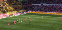 双方球员列队完毕,比赛即将开始——美因茨球员脸上写着"求轻虐",多特球员眼里闪着"刷数据"的光